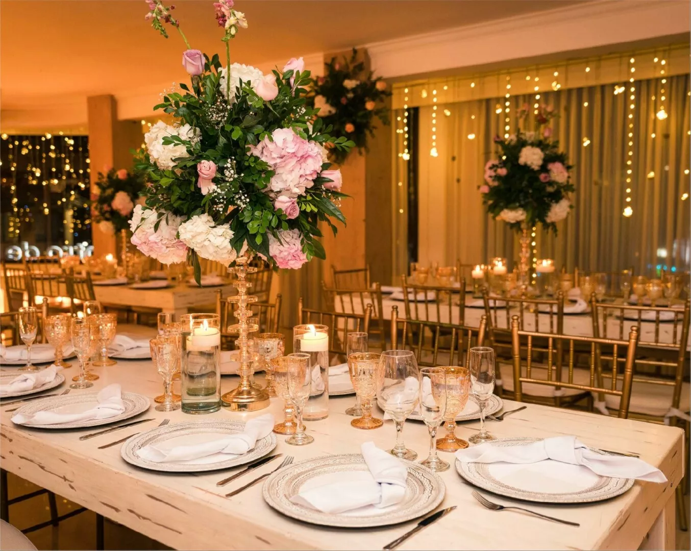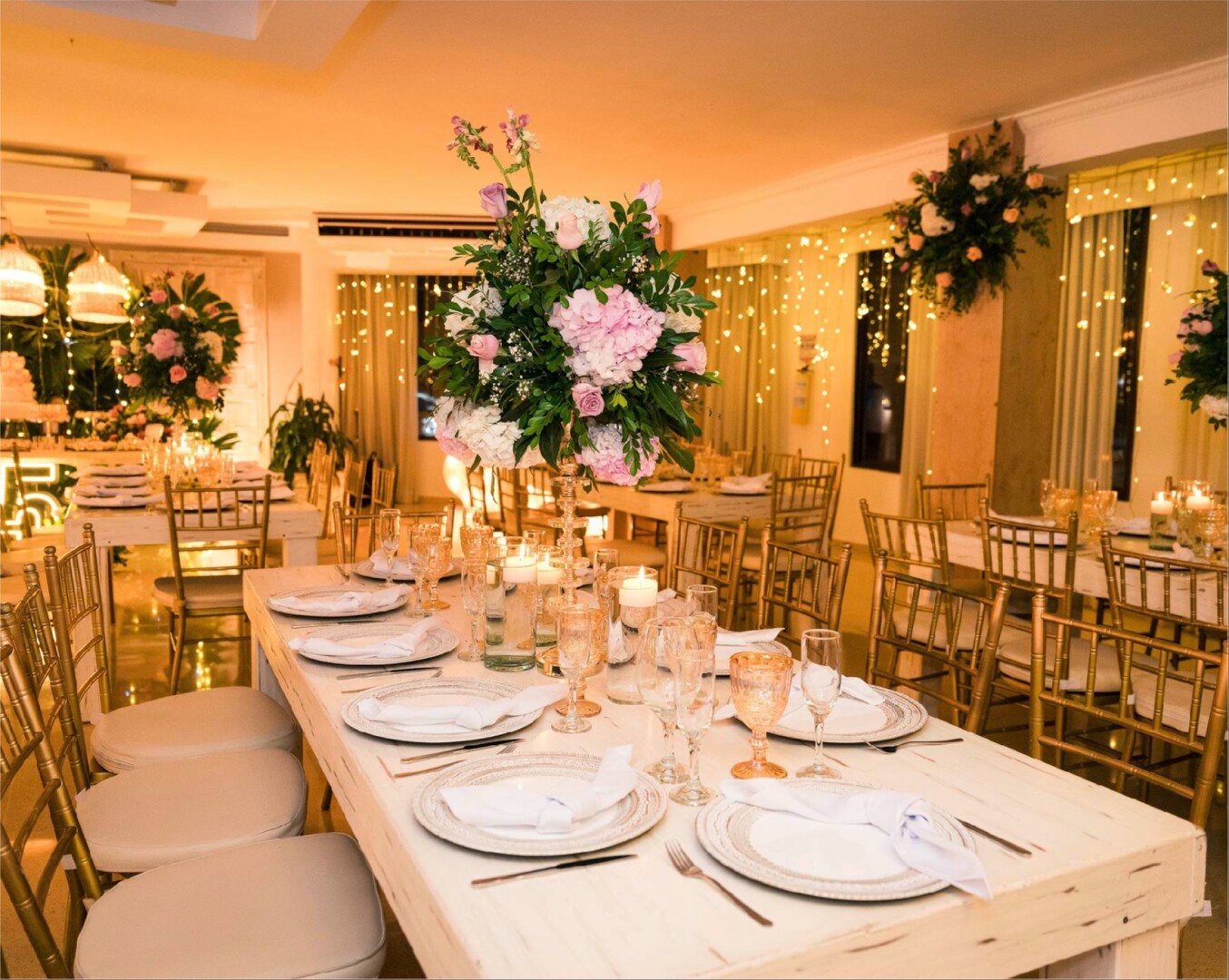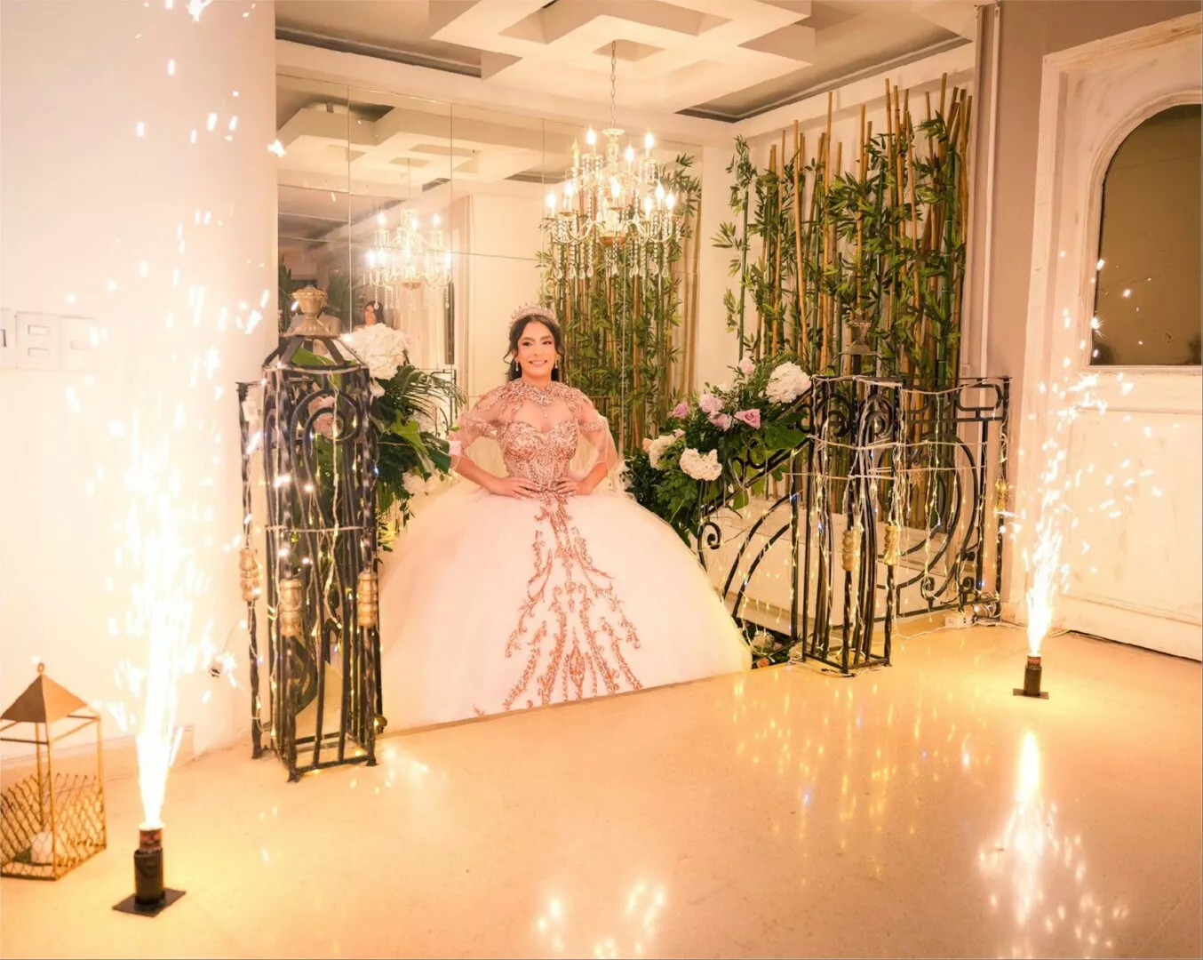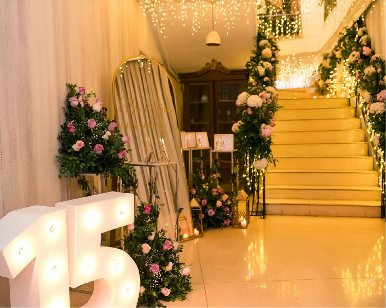 El Salón Vivaldi en Laureles se transformó en un escenario mágico donde cada detalle brilló con esplendor para celebrar los 15 años de Sofi. Bajo un techo de luces cálidas y rodeado de una decoración sofisticada con toques dorados y verdes exuberantes, esta noche se convirtió en un sueño hecho realidad.